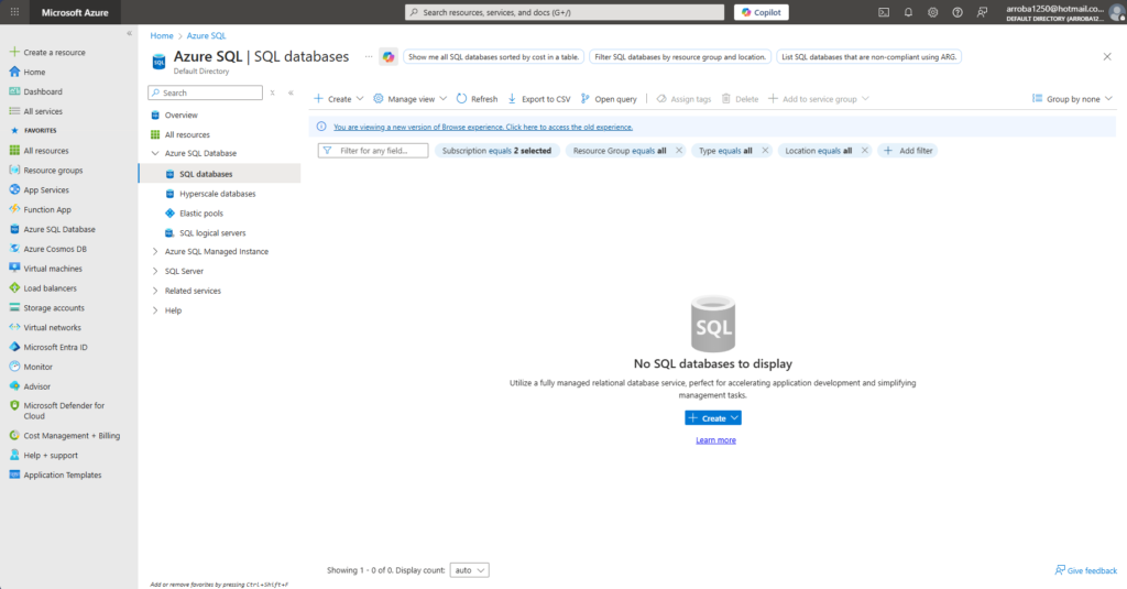 After migrating the database, I created a basic Azure SQL Database using the Azure portal, keeping the configuration simple and low-cost since this was only a demo. Once the database was available, I connected to it again through SQL Server Management Studio to validate tables, schemas, and data consistency.