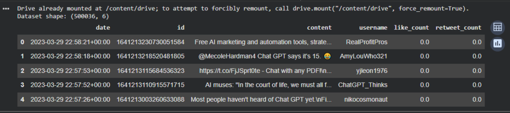 file_path = '/content/drive/MyDrive/Colab Notebooks/chatgpt-related-tweetsJan-Mar2023.csv'