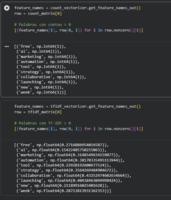 In this step I convert the cleaned tweets into numerical matrices that can be used by the topic-modeling algorithms. For the LDA model, I use a CountVectorizer to create a bag-of-words representation where each entry counts how many times each term appears in a tweet. For the NMF model, I use TF-IDF, which reduces the weight of very common words and highlights more distinctive terms.